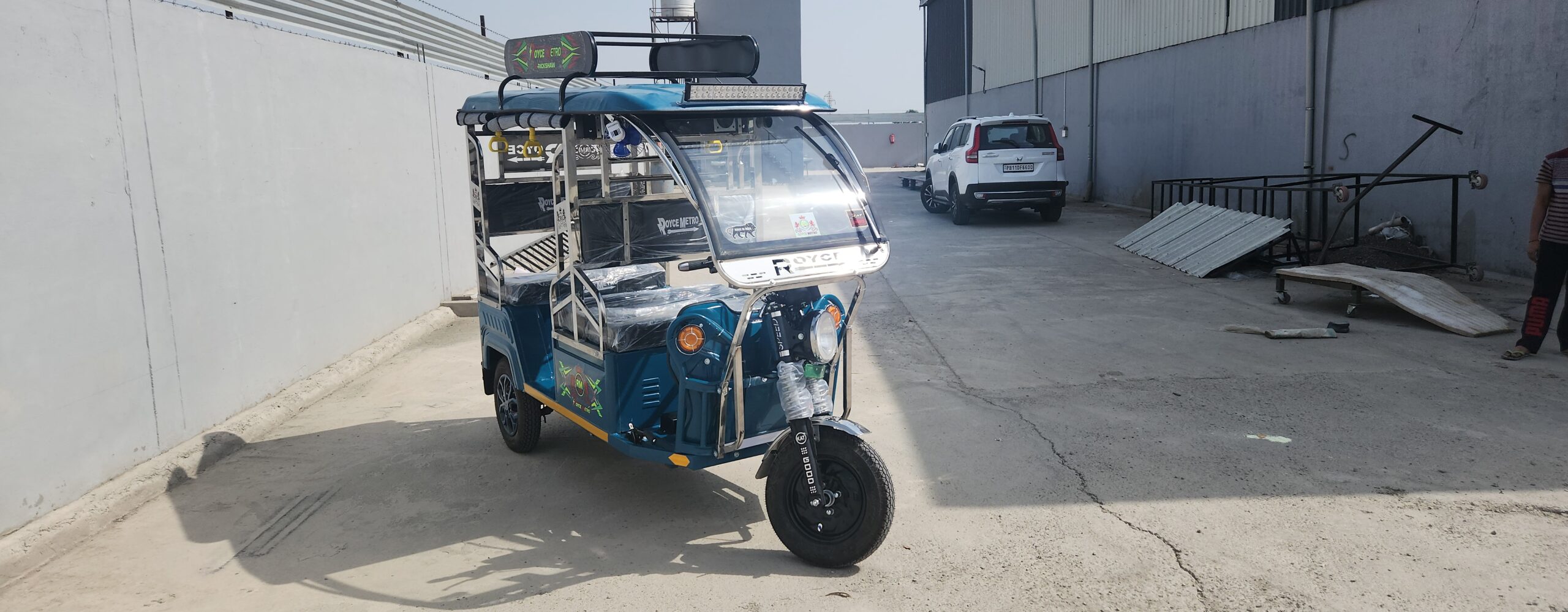 Royce Metro Ev is one of the most durable and cost-effective E-rickshaw of India.It comes with a lot of features which not only makes the ride quality better but also makes the owner proud to possess such a good quality e-vehicle.